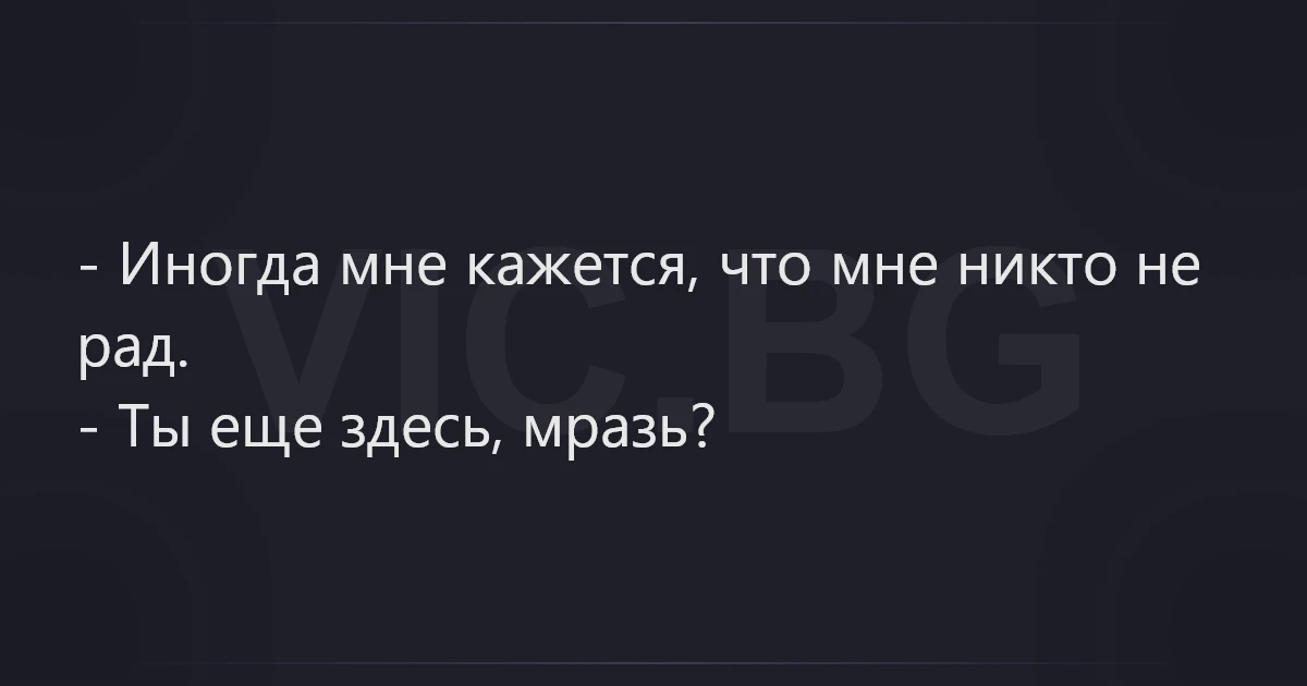 - Иногда мне кажется, что мне никто не рад. - Ты еще здесь, мразь?