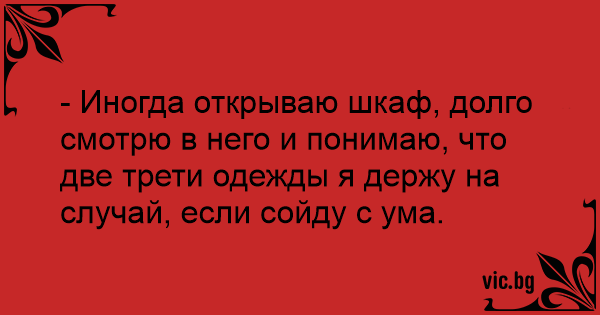 - Иногда открываю шкаф, долго смотрю в него и понимаю, что две трети одежды я держу на случай, если сойду с ума.