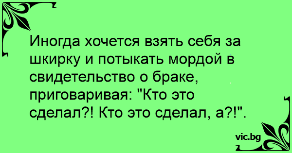 Иногда хочется взять себя за шкирку и потыкать мордой в свидетельство о браке, приговаривая: "Кто это сделал?! Кто это сделал, а?!".