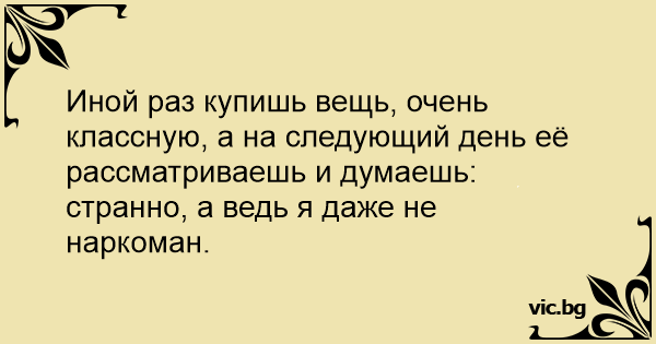 Иной раз купишь вещь, очень классную, а на следующий день её рассматриваешь и думаешь: странно, а ведь я даже не наркоман.