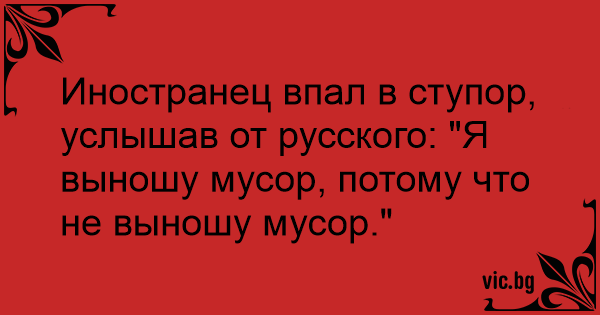 Иностранец впал в ступор, услышав от русского: "Я выношу мусор, потому что не выношу мусор."