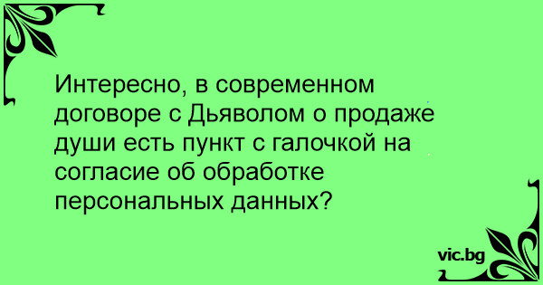 Интересно, в современном договоре с Дьяволом о продаже души есть пункт с галочкой на согласие об обработке персональных данных?