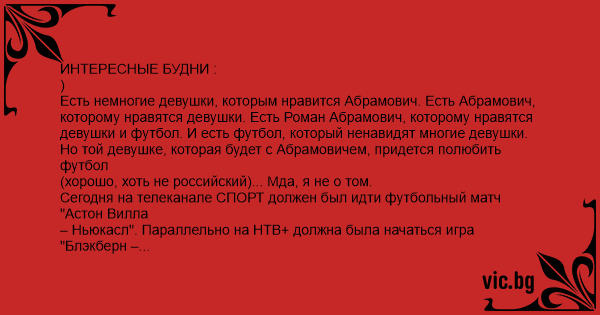 Есть немногие девушки, которым нравится Абрамович. Есть Абрамович,