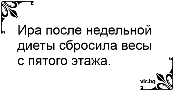 Ира после недельной диеты сбросила весы с пятого этажа.