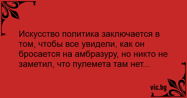 Искусство политика заключается в том, чтобы все увидели, как он бросается на амбразуру, но никто не заметил, что пулемета там нет...