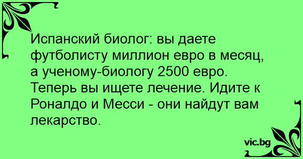 Испанский биолог: вы даете футболисту миллион евро в месяц, а ученому-биологу 2500 евро. Теперь вы ищете лечение. Идите к Роналдо и Месси - они найдут вам лекарство.