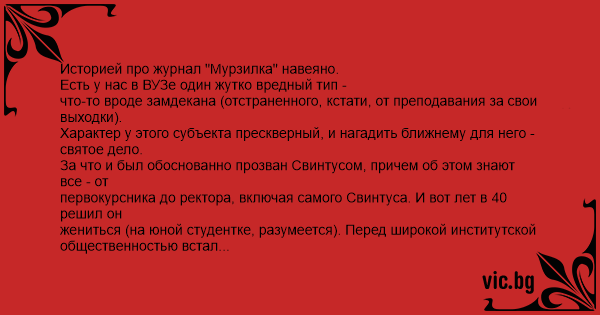 первокурсника до ректора, включая самого Свинтуса. И вот лет в 40 решил он