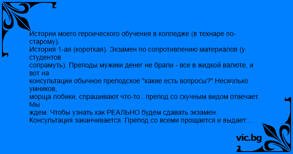 История 1-ая (короткая). Экзамен по сопротивлению материалов (у студентов