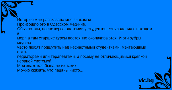 морг, а там старшие курсы постоянно околачиваются. И эти зубры медина