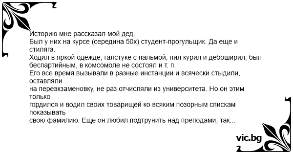 Был у них на курсе (середина 50х) студент-прогульщик. Да еще и стиляга.