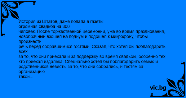 такой восхитительной свадьбы. Хотел поблагодарить всех за подарки и за