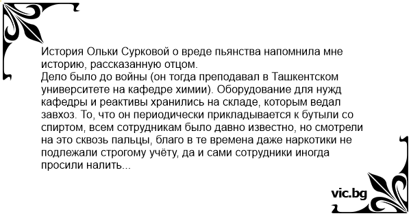 История Ольки Сурковой о вреде пьянства напомнила мне историю, рассказанную отцом.