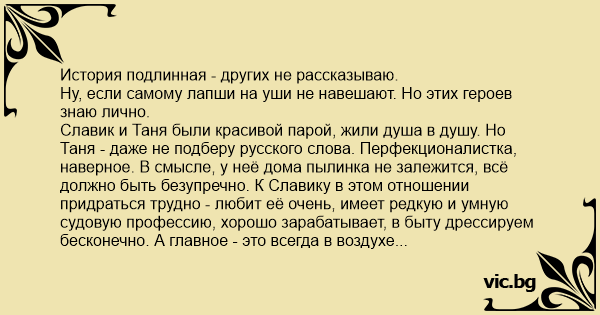 Славик и Таня были красивой парой, жили душа в душу. Но Таня - даже не подберу русского слова. Перфекционалистка, наверное. В смысле, у неё дома пылинка не залежится, всё должно быть безупречно. К Славику в этом отношении придраться трудно - любит её очень, имеет редкую и умную судовую профессию, хорошо зарабатывает, в быту дрессируем бесконечно. А главное - это всегда в воздухе вокруг мужика носится, если есть - случись что, сдохнет, но в беде любимую спасёт. Однако недостаток всё же был Таней выявлен. В компании с друзьями опрокинуть по рюмашке - для Славика как для подсолнуха солнце. Раскрывается весь, сияет добрым светом. И вид становится не такой бронированный, как обычно.