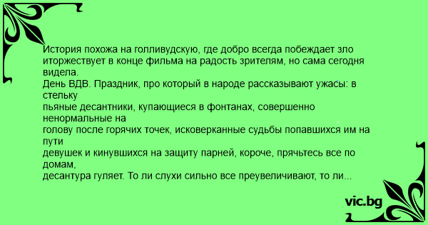 пьяные десантники, купающиеся в фонтанах, совершенно ненормальные на