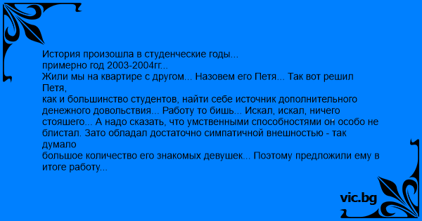 Жили мы на квартире с другом... Назовем его Петя... Так вот решил Петя,