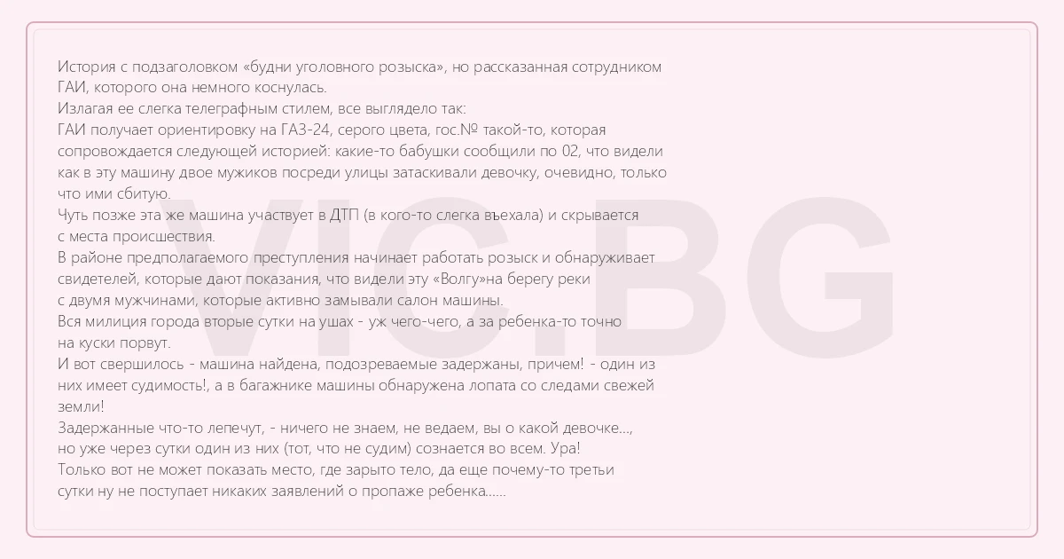 История с подзаголовком «будни уголовного розыска», но рассказанная сотрудником