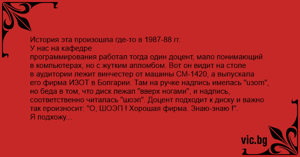 соответственно читалась "шоэп". Доцент подходит к диску и важно