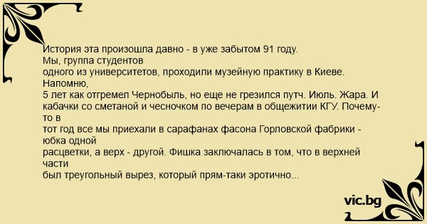 тот год все мы приехали в сарафанах фасона Горловской фабрики - юбка одной