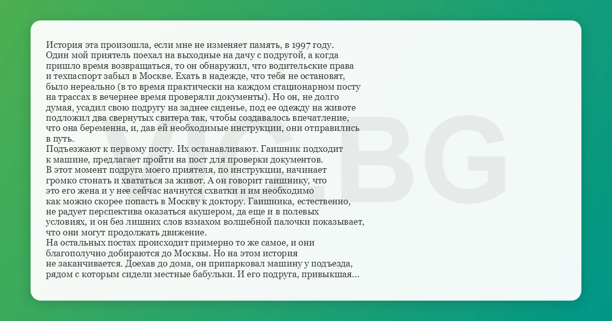 громко стонать и хвататься за живот. А он говорит гаишнику, что