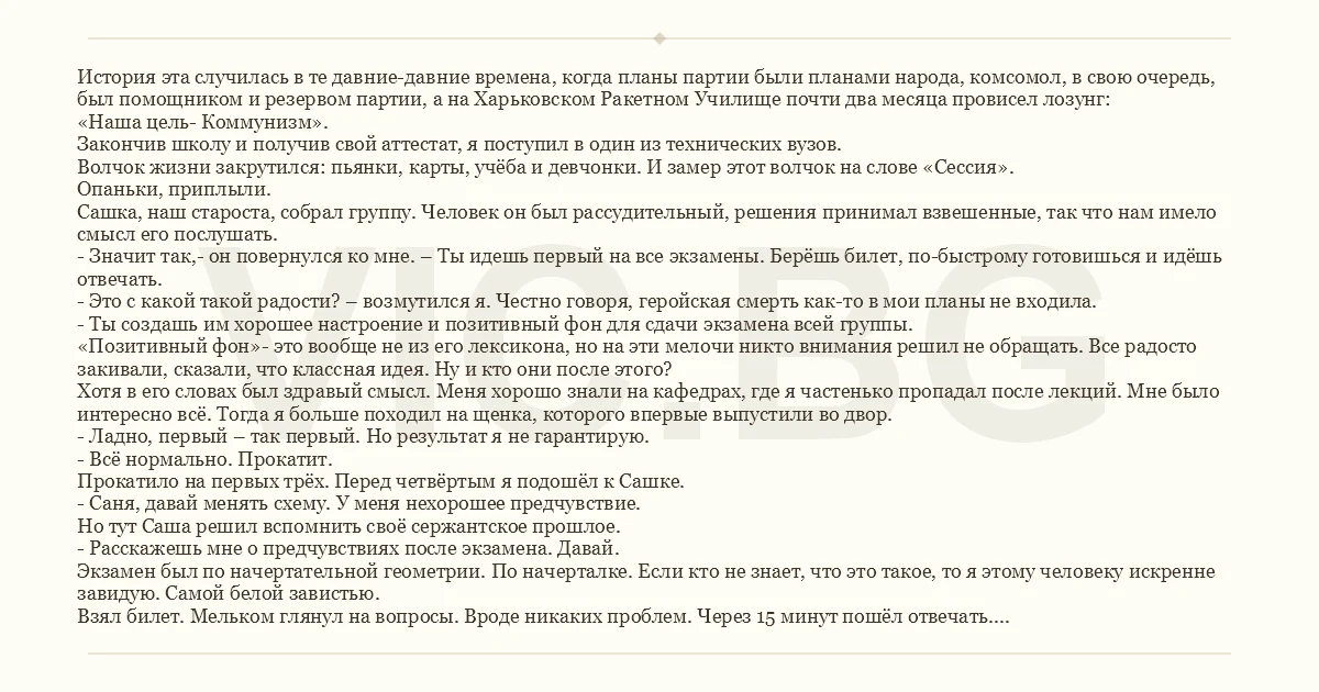 - Значит так,- он повернулся ко мне. – Ты идешь первый на все экзамены. Берёшь билет, по-быстрому готовишься и идёшь отвечать.