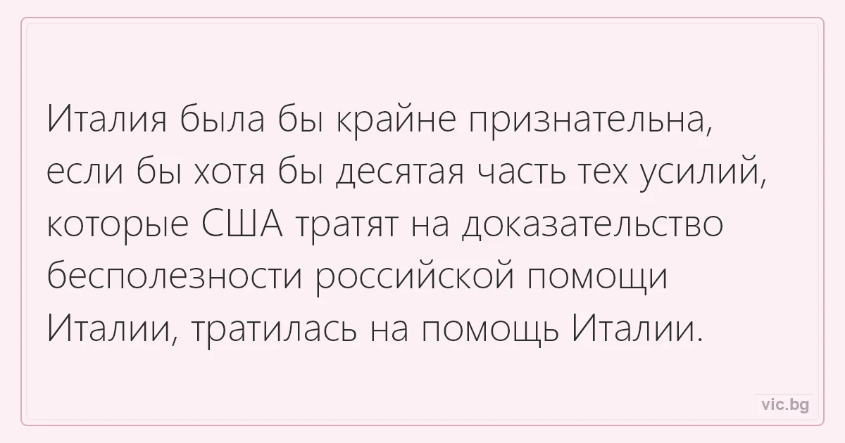 Италия была бы крайне признательна, если бы хотя бы десятая часть тех усилий, которые США тратят на доказательство бесполезности российской помощи Италии, тратилась на помощь Италии.