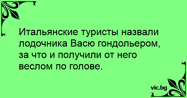 Итальянские туристы назвали лодочника Васю гондольером, за что и получили от него веслом по голове.