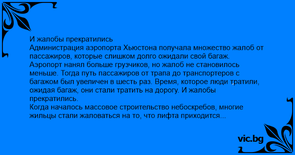 И жалобы прекратились Администрация аэропорта Хьюстона получала множество жалоб от пассажиров, которые слишком долго ожидали свой багаж.