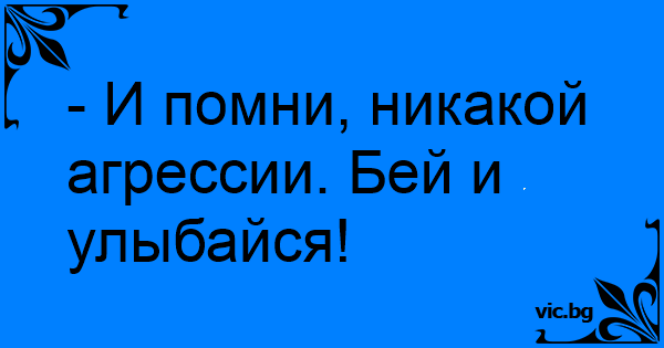 - И помни, никакой агрессии. Бей и улыбайся!