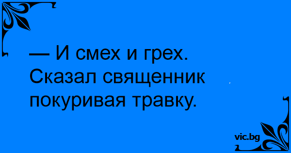 — И смех и грех. Сказал священник покуривая травку.