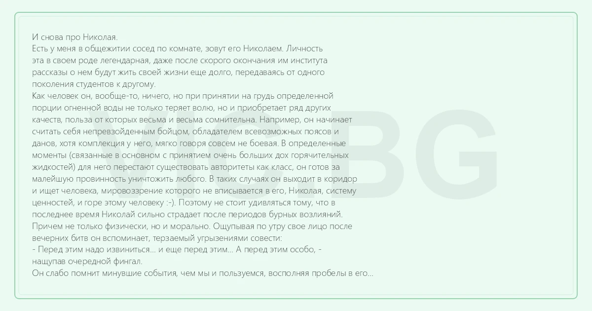 Есть у меня в общежитии сосед по комнате, зовут его Николаем. Личность
