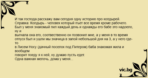 И так господа расскажу вам сегодня одну историю про колдырей.