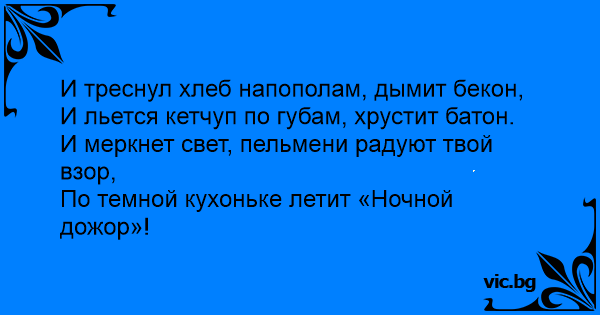И меркнет свет, пельмени радуют твой взор,