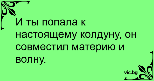 И ты попала к настоящему колдуну, он совместил материю и волну.
