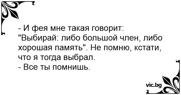 Той - Бях при велик магьосник! Даде ми да си избера: голям пенис или добра памет.