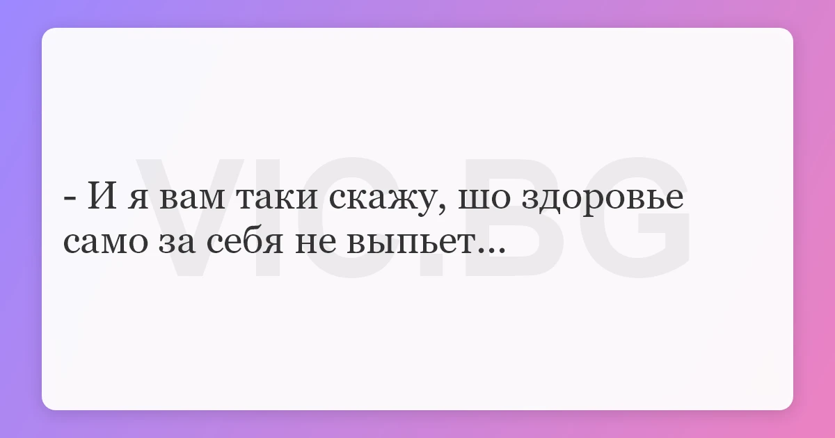 - И я вам таки скажу, шо здоровье само за себя не выпьет...