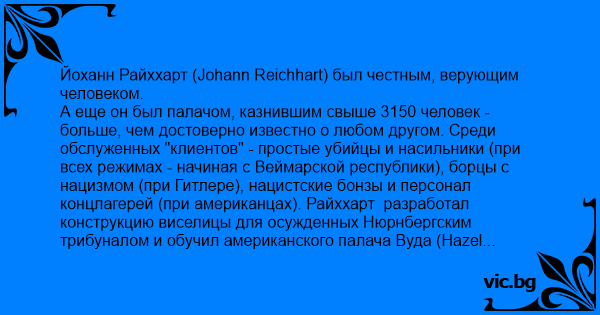(с) Вольный пересказ немецкого оригинала из "Франкфуртер Альгемайне": www.faz.net/aktuell/gesellschaft/scharfrichter-johann-reichhart-der-vollstrecker-12768094.html
