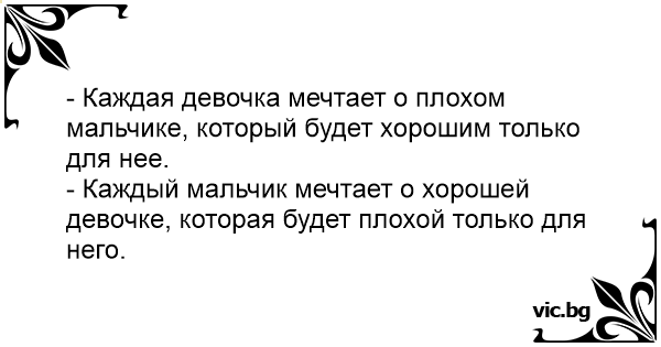 - Каждый мальчик мечтает о хорошей девочке, которая будет плохой только для него.
