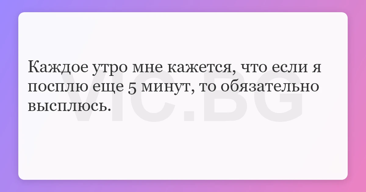 Каждое утро мне кажется, что если я посплю еще 5 минут, то обязательно высплюсь.