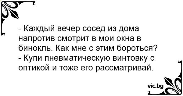 - Каждый вечер сосед из дома напротив смотрит в мои окна в бинокль. Как мне с этим бороться?