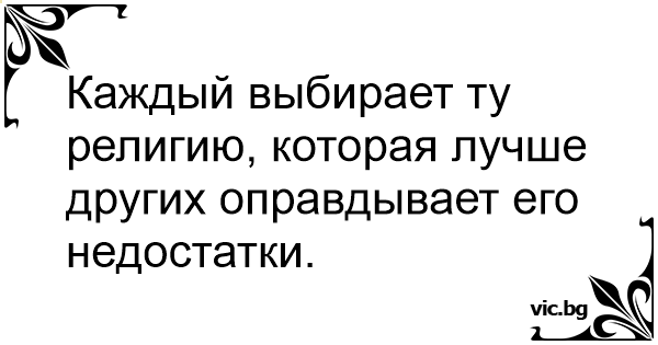 Каждый выбирает ту религию, которая лучше других оправдывает его недостатки.
