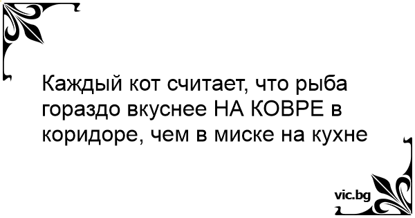 Каждый кот считает, что рыба гораздо вкуснее НА КОВРЕ в коридоре, чем в миске на кухне