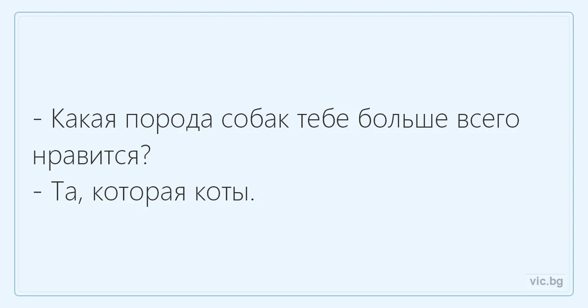 - Какая порода собак тебе больше всего нравится?<br />- Та, которая коты.