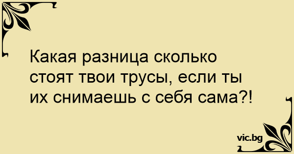 Какая разница сколько стоят твои трусы, если ты их снимаешь с себя сама?!
