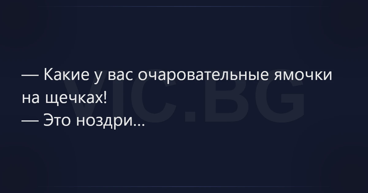 — Какие у вас очаровательные ямочки на щечках! — Это ноздри…
