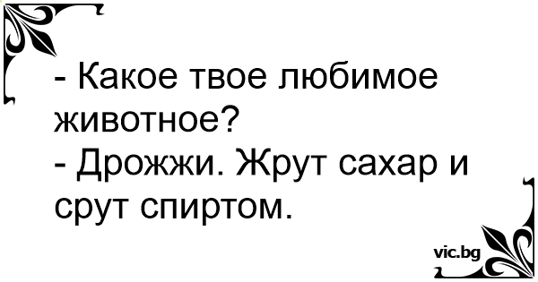 - Любимо животно? - Дрождите. Ядат захар, акат алкохол ..