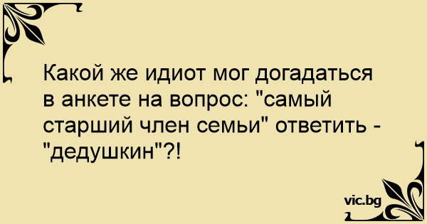 Какой же идиot мог догадаться в анкете на вопрос: "самый старший члeн семьи" ответить - "дедушкин"?!