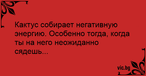 Кактус собирает негативную энергию. Особенно тогда, когда ты на него неожиданно сядешь...