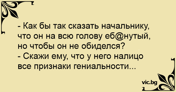 - Как бы так сказать начальнику, что он на всю голову еб@нутый, но чтобы он не обиделся?