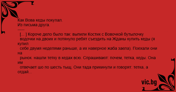 [... ] Короче дело было так: выпили Костик с Вовочкой бутылочку