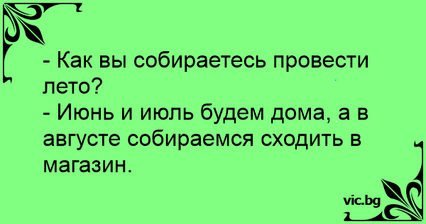 - Июнь и июль будем дома, а в августе собираемся сходить в магазин.